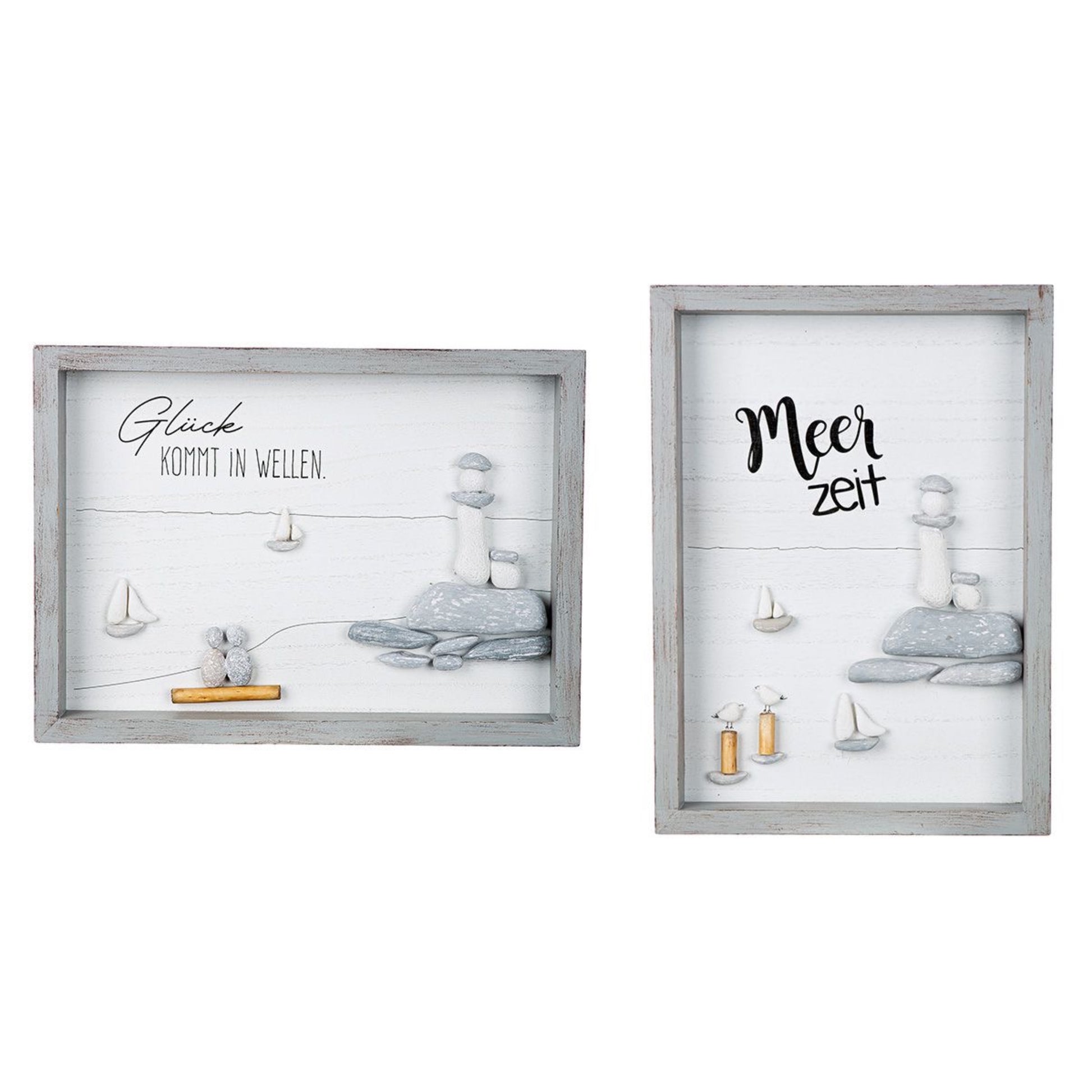 Steinbild Meerzeit Glück von Gilde - Maritime Dekoration mit Schiff und Leuchtturm