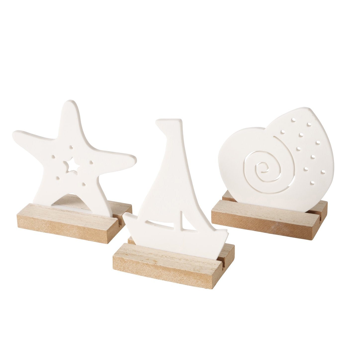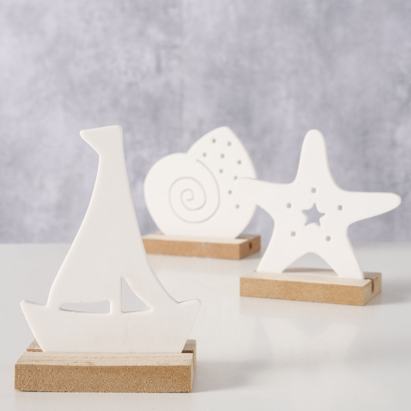 Maritime Dekoaufsteller " Oeceano " Seestern Boot Muschel Keramik mit Holz von Boltze - Maritime Dekoration