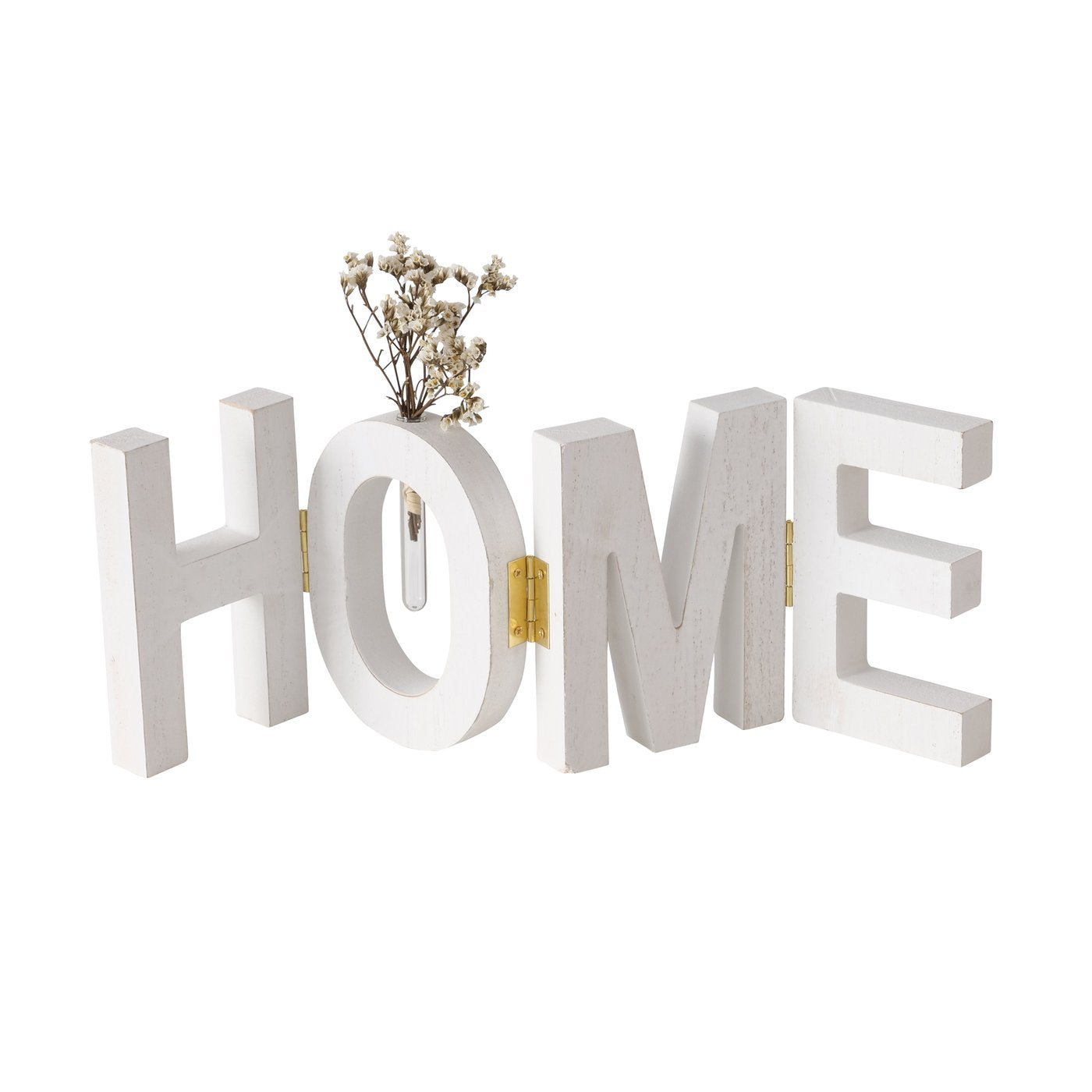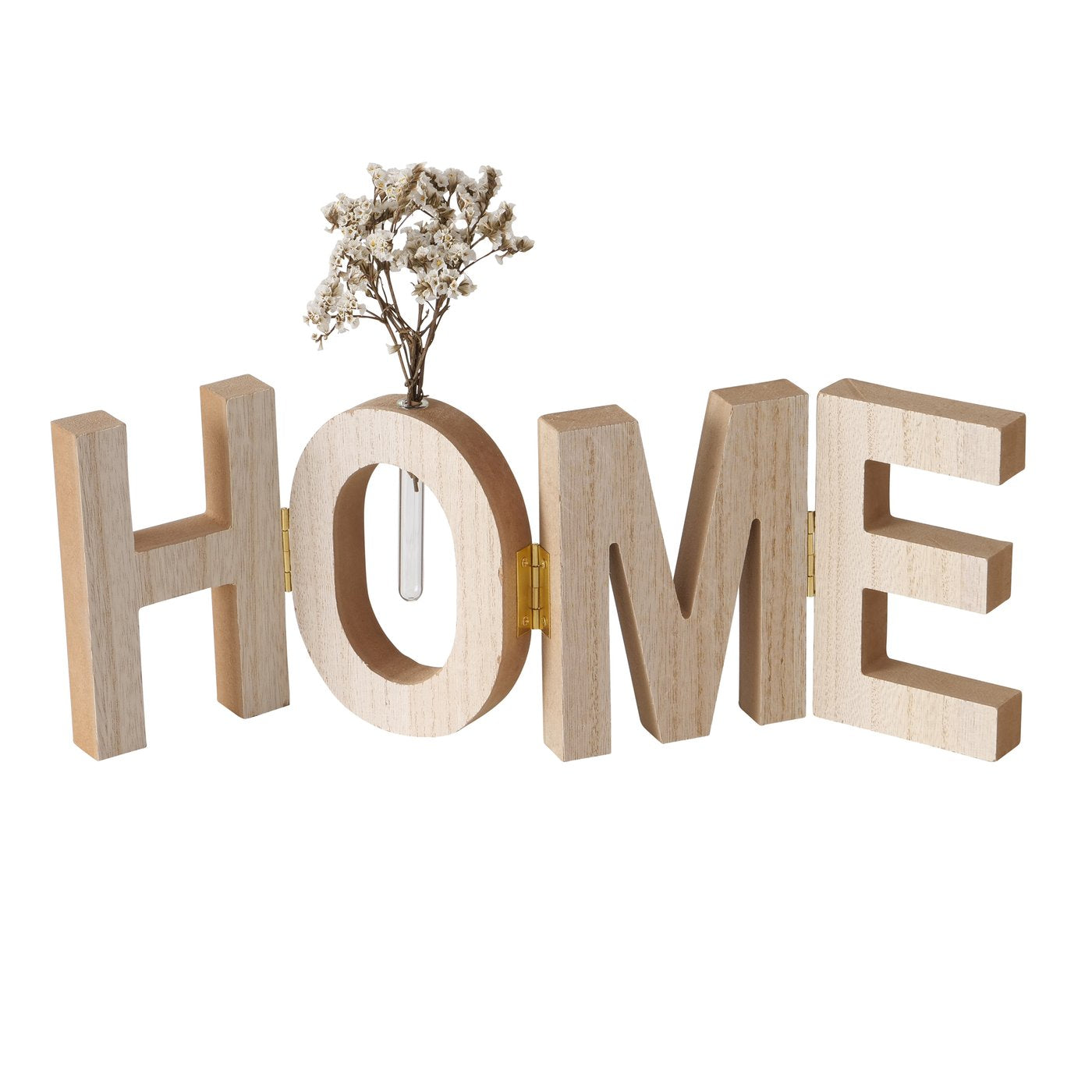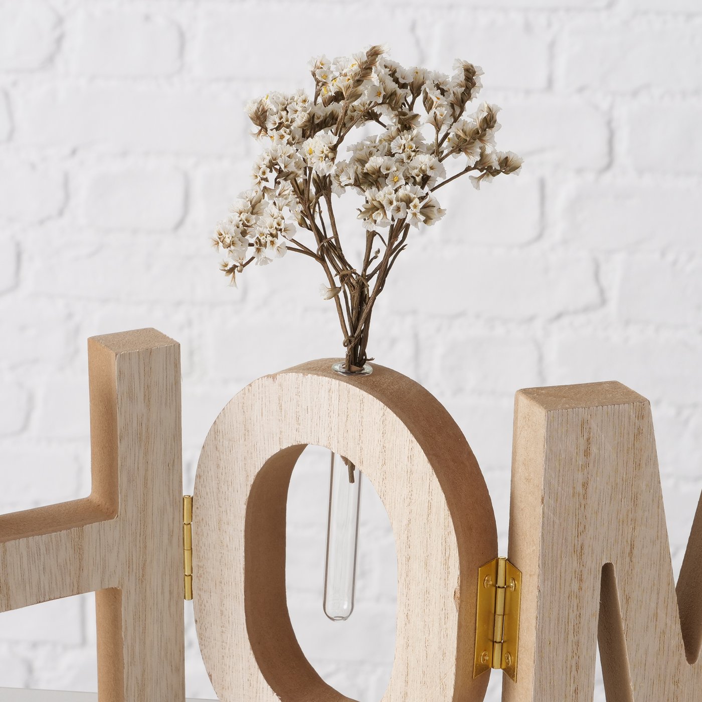 Dekoaufsteller/Schriftzug aus Holz "Home" klappbar natur/weiß inkl. Trockenblumen von Boltze