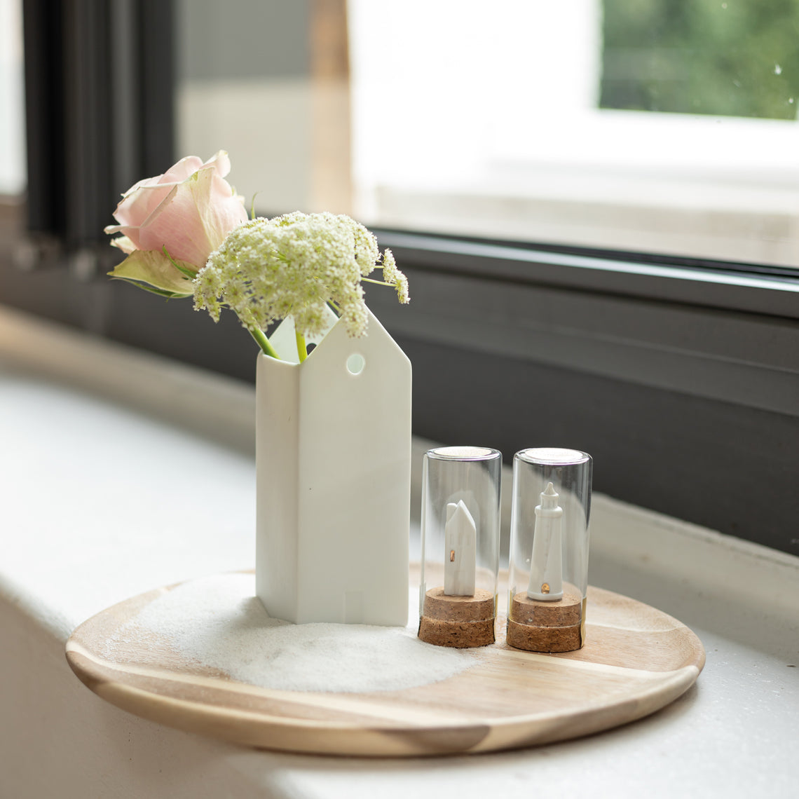 Material: unglasieres Porzellan, Kork, Glas