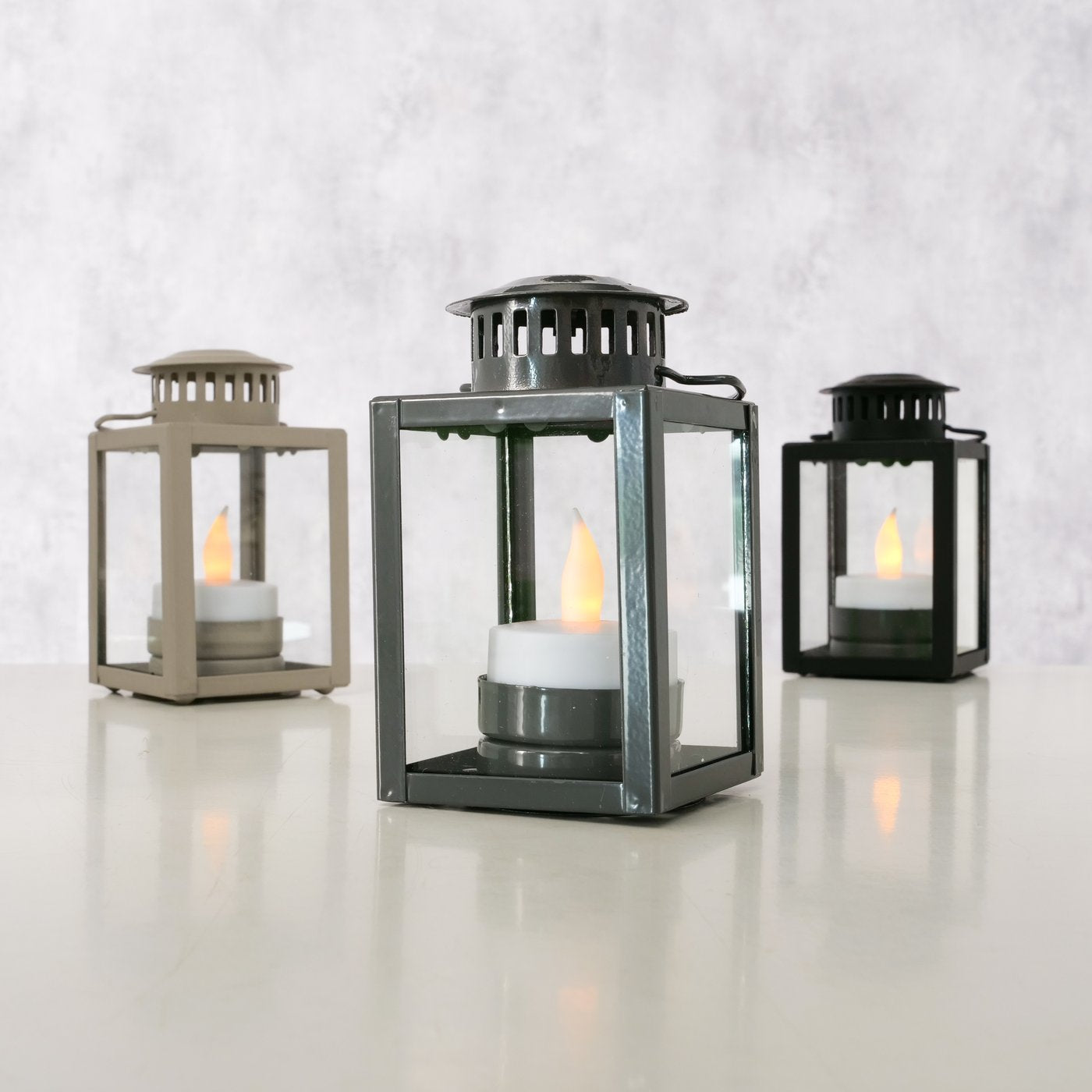 Mini-Laterne aus Metall für Teelichter als Geschenkidee beige/dunkelgrau/schwarz von Boltze