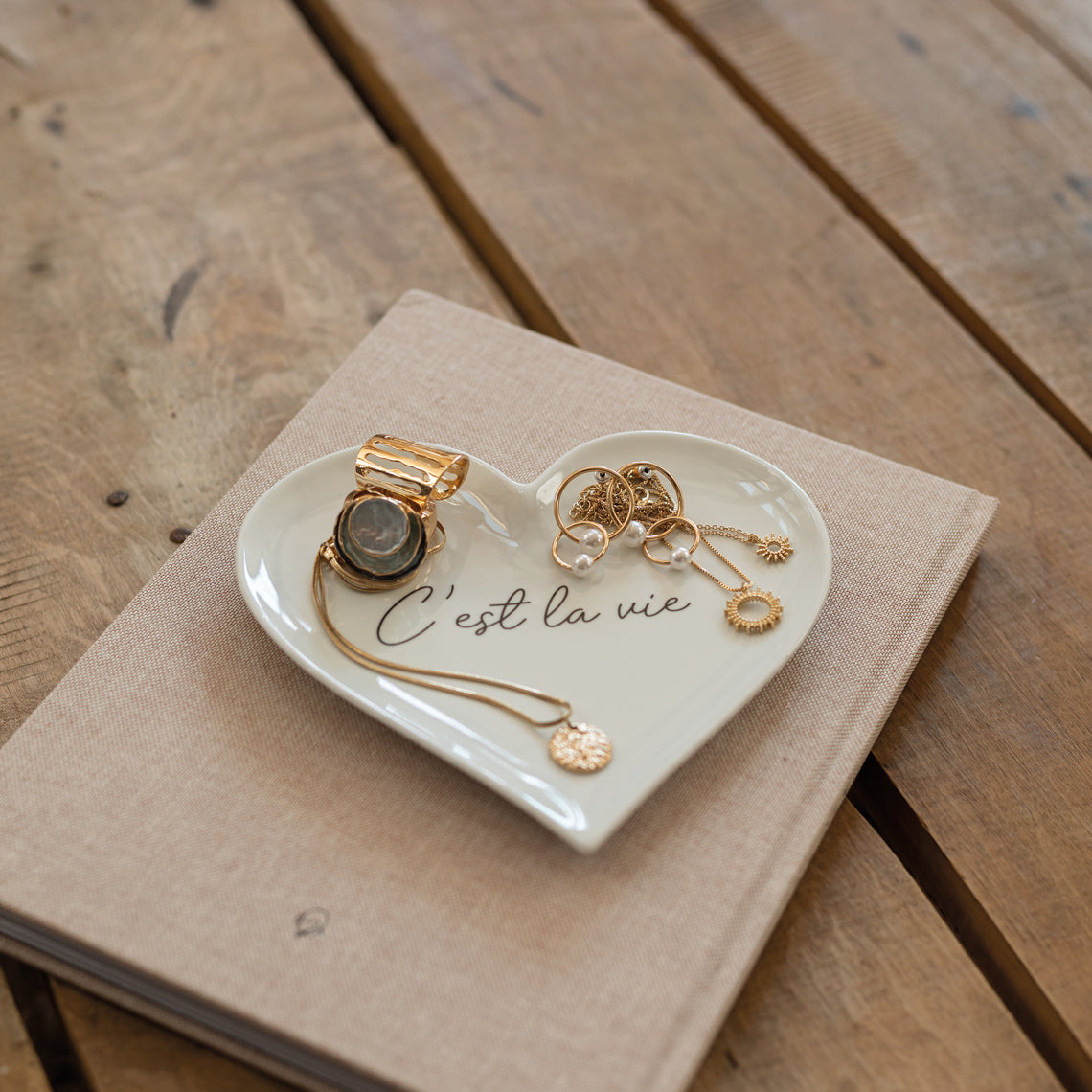 Teller / Dekoteller aus Porzellan Herzform " C´est la vie " von räder design Herz